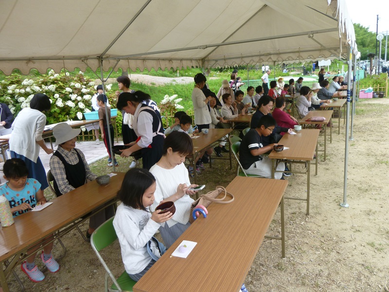 また、お茶席では四郷中学校茶道部の皆さんにおいしい抹茶と和菓子をふるまってもらいました。恒例となっている「あじさい俳句大会」では今年も力作が揃いました。