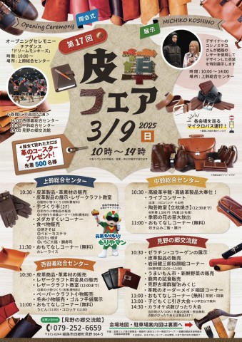 ◯皮革フェアのチラシは見野の郷交流館が発行、ファッションショーのチラシは姫路皮革製品推進協議会が発行したものです。