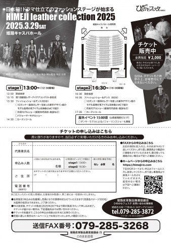 また、ファッションショーは昨年、姫路城世界文化遺産登録30周年事業として、大々的に開催され、大変な反響がありました。姫路市をレザーファッションの先駆的都市として発展させることは意義あることです。また、これらを通してファッション文化が花開くことを期待しています。今年は3月29日にキャスパホールにおいて、2回開催されます。