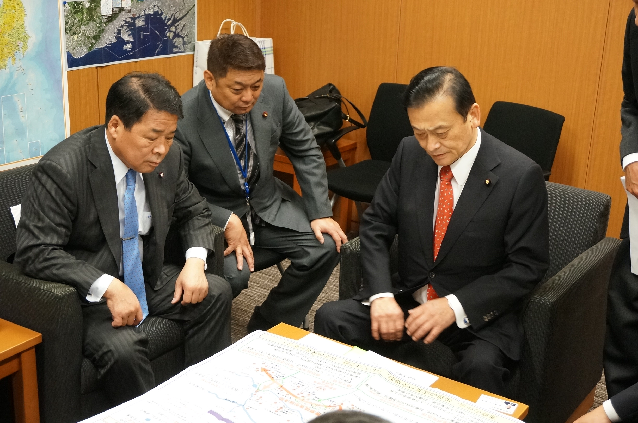 我が会派は政権政党としての役割を担うべく、副市長や市当局担当者と一緒に議員会館(兵庫県選出の衆参議員)と霞ヶ関(財務省、国土交通省)を訪問し、道路網の優先区間の絞り込みとして姫路市区間の選定と国による早急な計画段階評価の実施、並びに予算確保の働きかけを熱心に行いました。特に鴻池祥肇参議院議員には多大なる力添えをいただき、平成26年4月15日に引き続き麻生太郎財務大臣に直接、要望する機会を与えていただきました。播磨の中核である本市の成長が全播磨、そして全国の成長を牽引し、「目に見える地方創生の実現」に邁進する端緒を開く要望活動となりました。